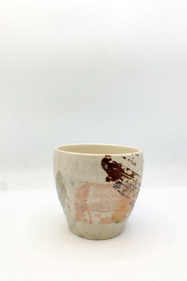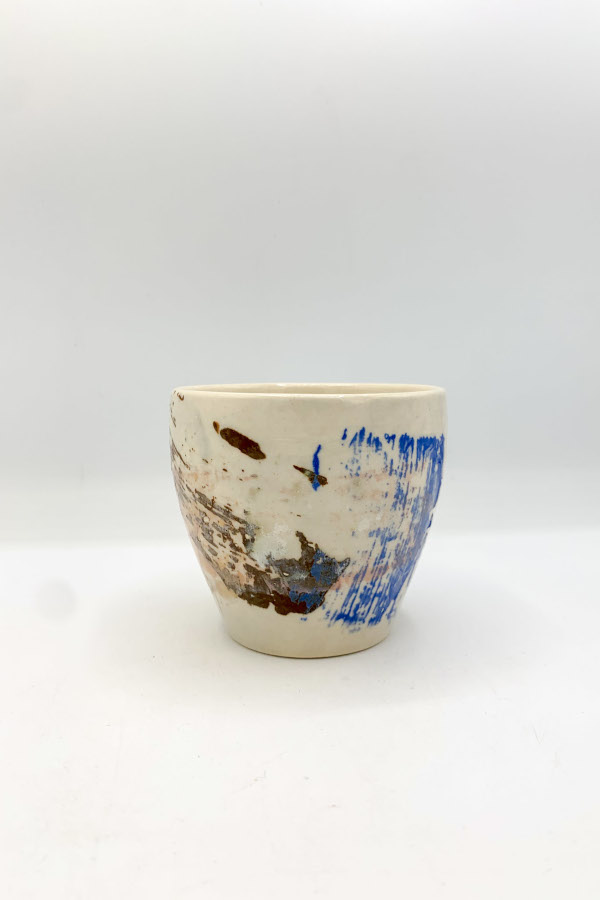 Elaboradas con esmero al torno en resistente gres de alta temperatura, estas tazas celebran la fusión de arte y funcionalidad. La decoración, vibrante y expresiva, cobra vida a través de engobes y pigmentos de colores que danzan en la superficie, como nubes acariciadas por el viento. El toque distintivo de cenizas de olivo añade una textura orgánica y una conexión profunda con la tierra, haciendo que cada sorbo se sienta como un pequeño viaje a la naturaleza.