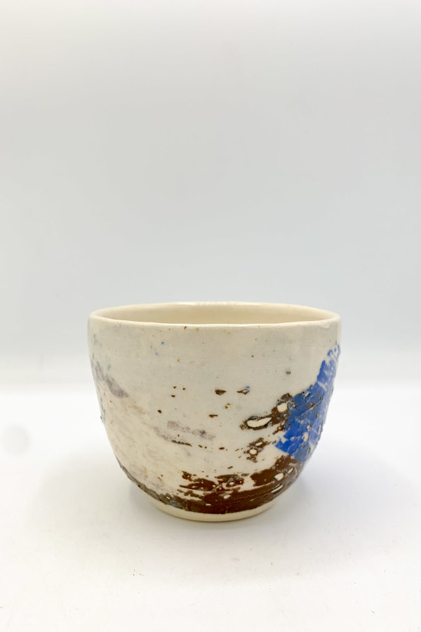 Elaboradas con esmero al torno en resistente gres de alta temperatura, estas tazas celebran la fusión de arte y funcionalidad. La decoración, vibrante y expresiva, cobra vida a través de engobes y pigmentos de colores que danzan en la superficie, como nubes acariciadas por el viento. El toque distintivo de cenizas de olivo añade una textura orgánica y una conexión profunda con la tierra, haciendo que cada sorbo se sienta como un pequeño viaje a la naturaleza.